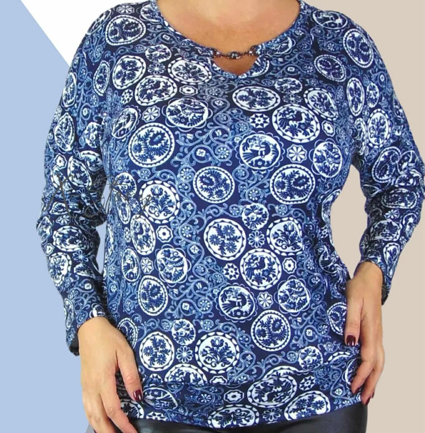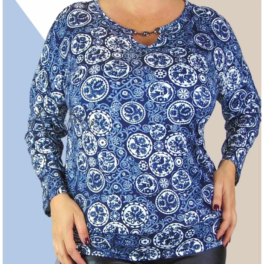 Kényelmes, élénk mintás, rugalmas anyagú, hosszú ujjú felső.