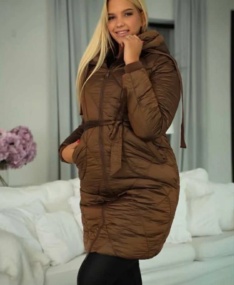 Vagány divatos oversize téli kabát, zipzárral, övvel, díszsteppeléssel.