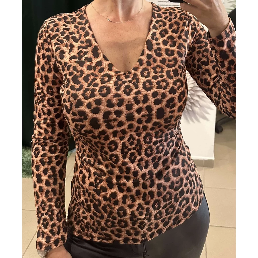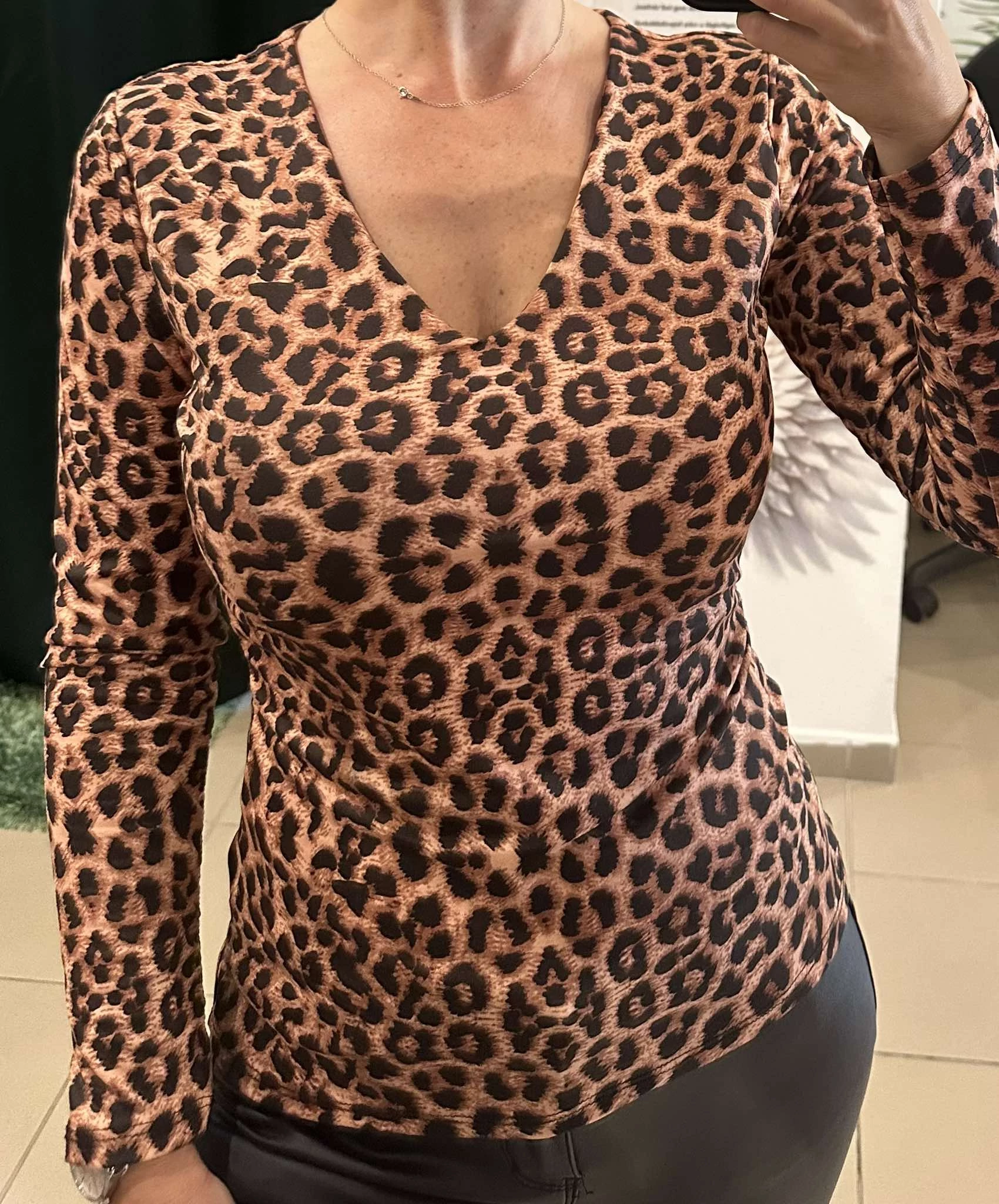 Karcsúsított, párduc mintás, hosszú ujjú felső.